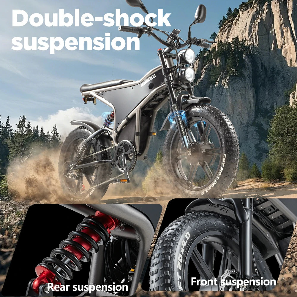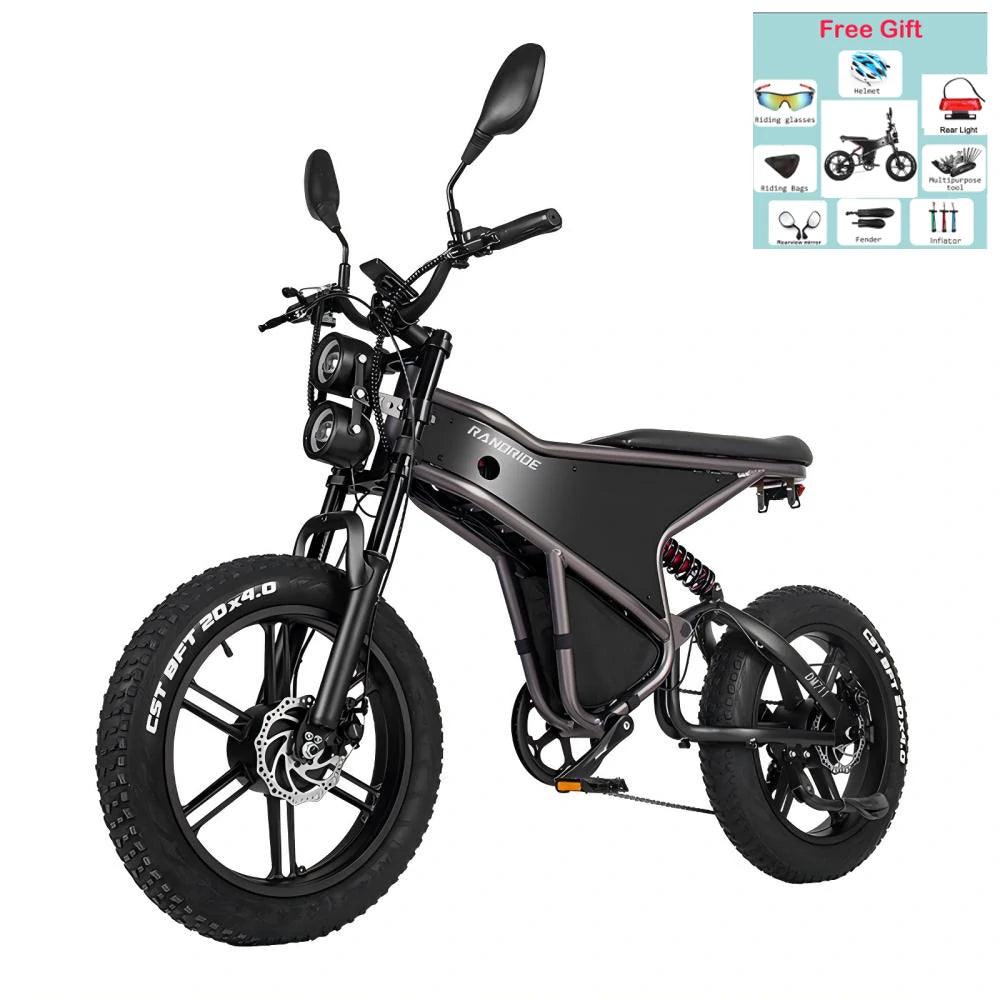 RANDRIDE DM711 20" Retro Fat Tire Electric Bike 500W*2 Dual Motors 48V 20Ah Battery
