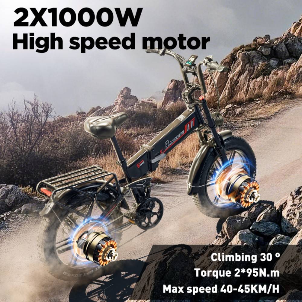 RANDRIDE YX20M-2 20" Folding Electric Bike 500W*2 (1000W*2 Peak) Dual Motors 48V 20Ah Battery