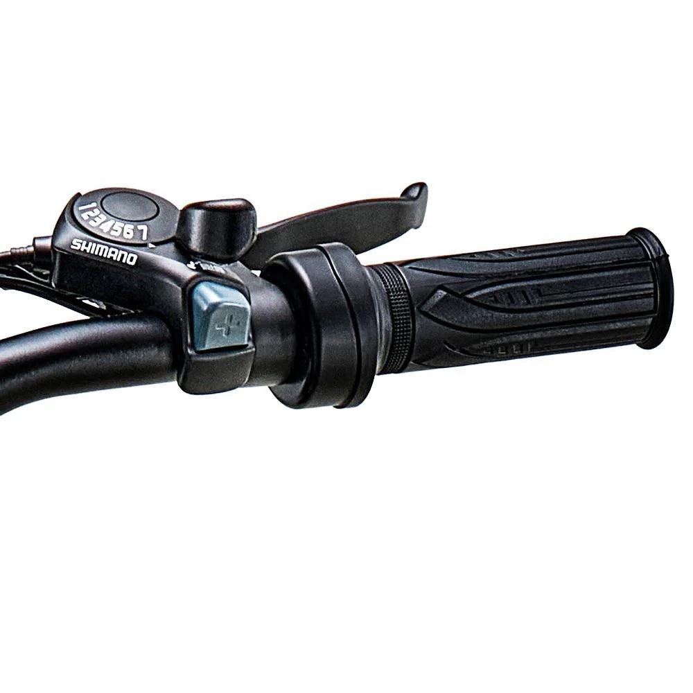 3.The bike is equipped with F&R mechanical disc brakes for effective and safe braking and has 7-speed Shimano derailleur for smooth and efficient gear shifting.
