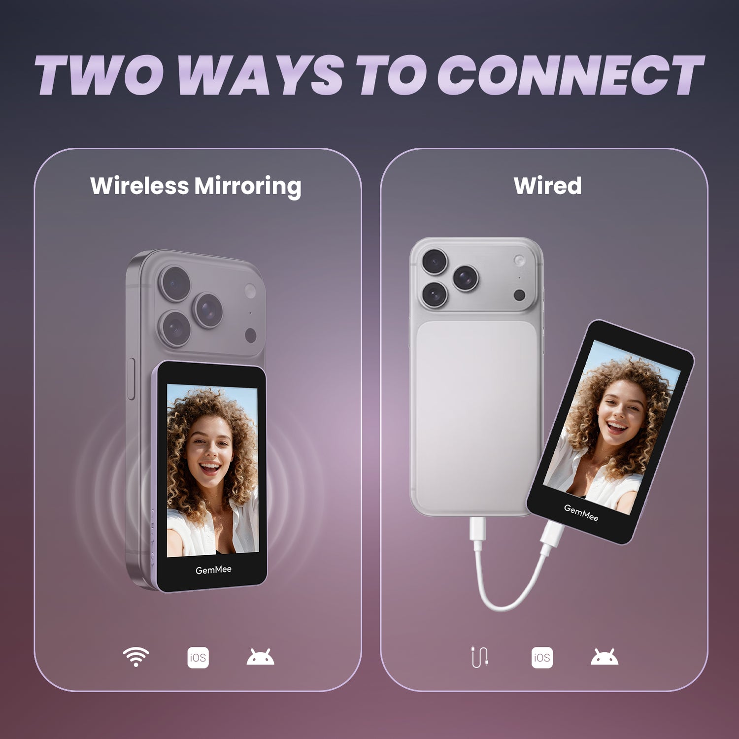 As Seen on TikTok! Discover the GemMee G100 Selfie Monitor, the portable 3.97-inch screen that content creators are raving about. As the ultimate mobile companion for iPhone and Android, it offers effortless connection: go truly wireless or choose a stable wired link. The built-in 3000mAh battery and unique stable base make it perfect for flawless selfies, video calls, and live streaming. See what the buzz is about and elevate your content creation today!