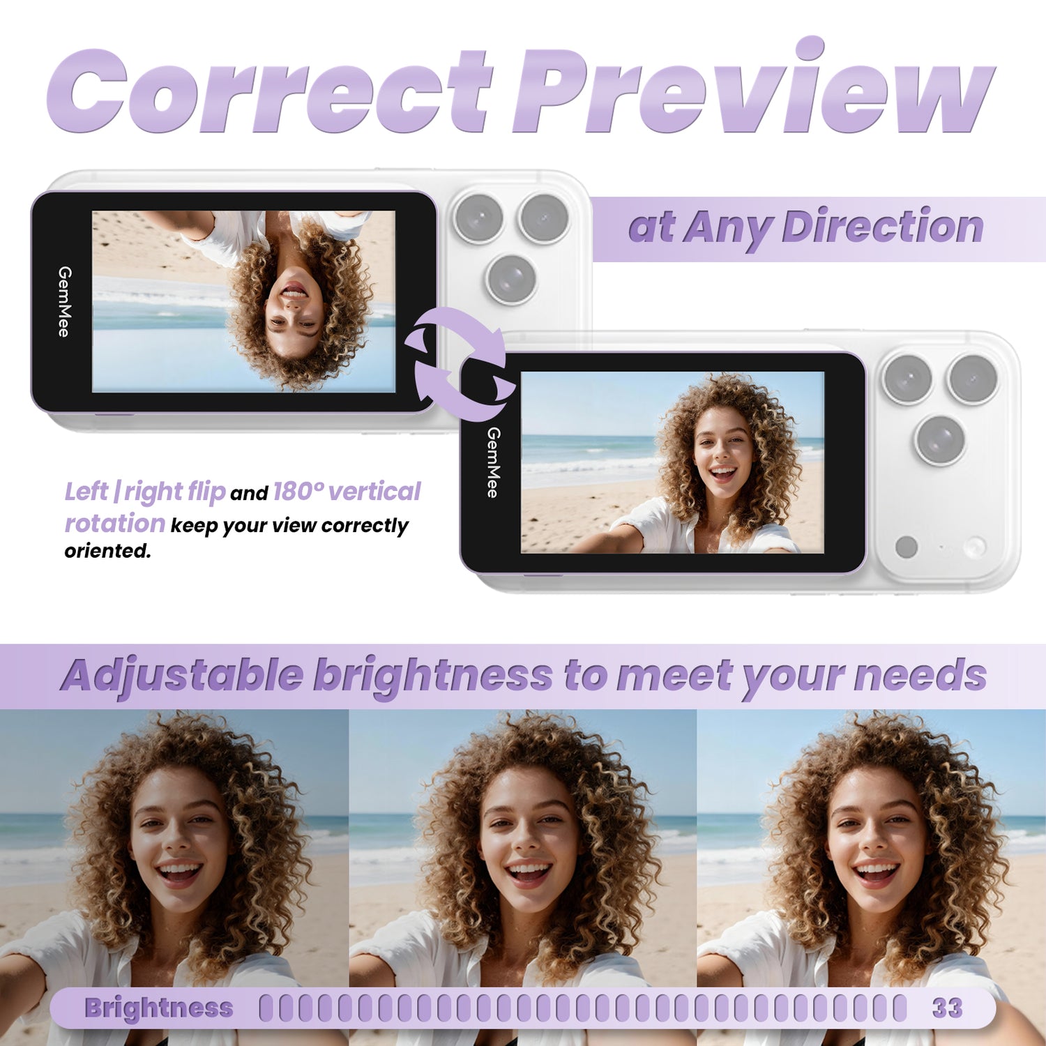 GEMMEE G100 Selfie Monitor with Stand 3000mAh Battery 3.97" Screen for iPhone/Android - US / Purple ist auf Lager und wird versandt, sobald es wieder verfügbar ist