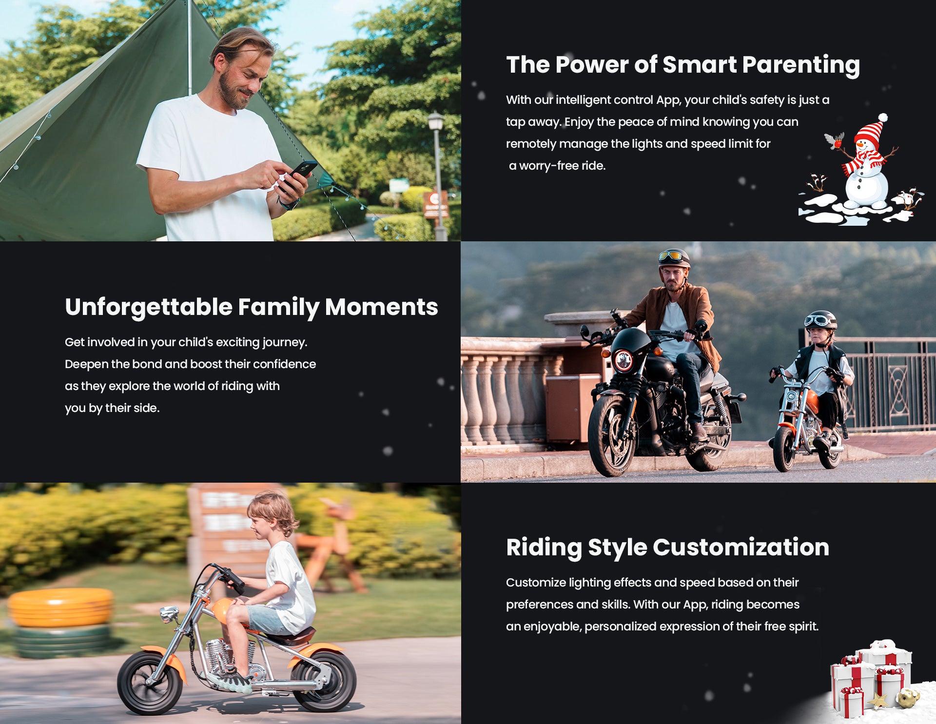 Cruiser 12 Plus (con aplicación) está equipado con tres velocidades ajustables de hasta 10 mph, como si fuera la llave mágica para abrir la puerta a un mundo nuevo. Ya sea que se deslice por caminos lisos o por senderos desafiantes y sinuosos, todo terreno se convierte en un parque de aventuras para los niños. Una motocicleta, tres velocidades, exploración y diversión ilimitadas.