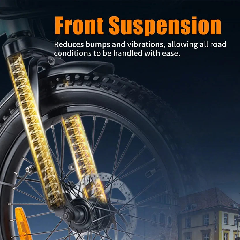 This electric bike combines power, comfort, and flexibility. Equipped with a 36V 17.8Ah lithium battery and a 250W motor, it offers smooth rides at up to 25 km/h, supporting journeys up to 100 km in pedal-assist mode. The foldable design and strong frame make it easy to store and transport, while the lighting and braking systems ensure safety on the road.
