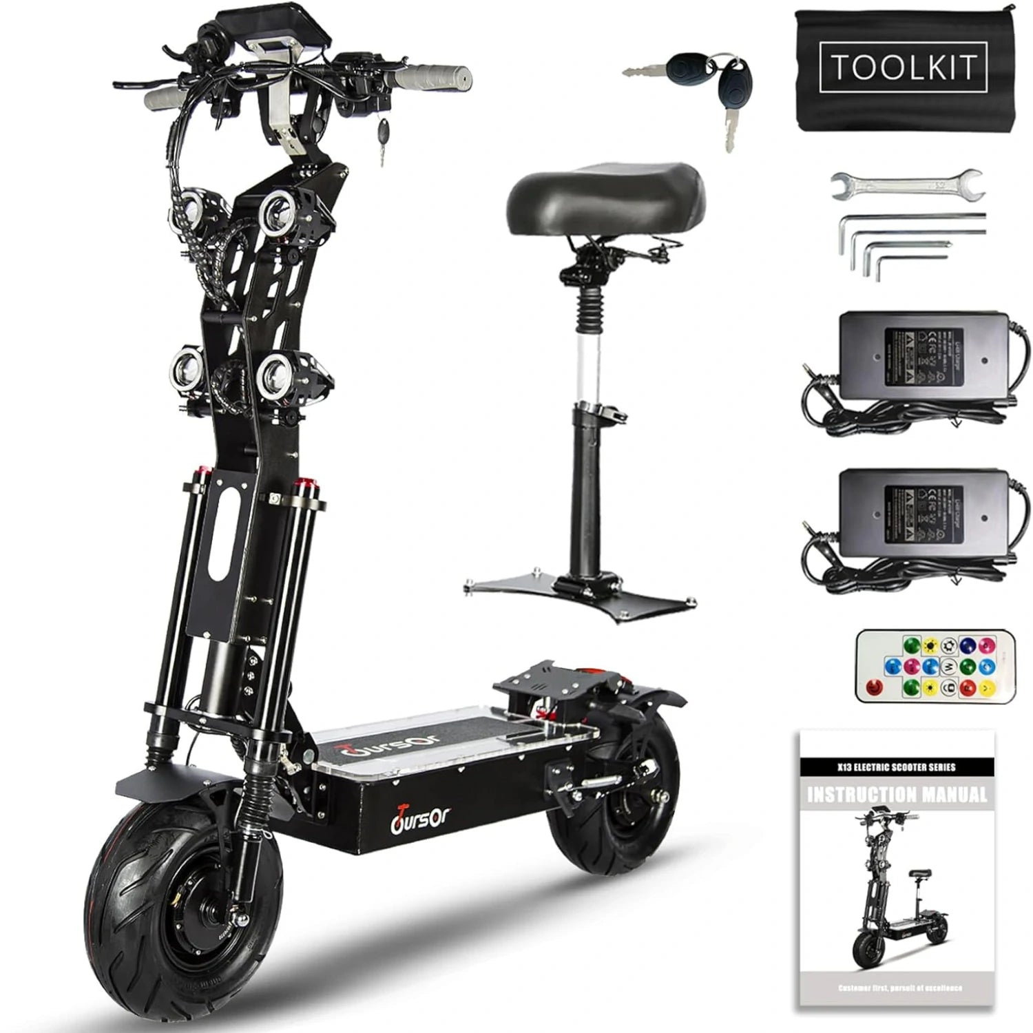 TOURSOR X13 72V 13" Folding Electric Scooter with Seat 5000W*2 Dual Motors 72V 40Ah Battery