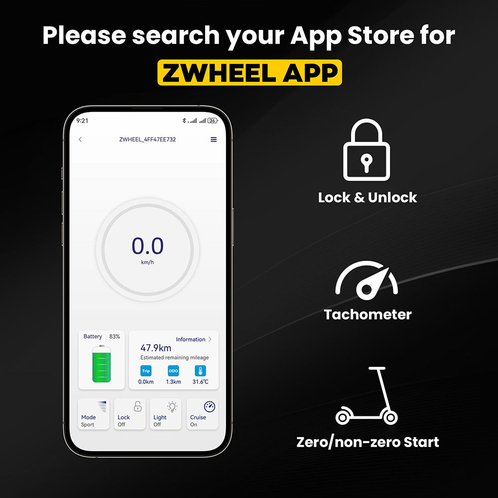 The IP54 waterproof rating ensures that the HONEYWHALE E9 is waterproof and dustproof in daily use. Light rain or splashing water on the road will not affect its normal operation. The HONEYWHALE E9 supports APP control and you can open and close the lock via the APP to ensure the safety of the electric scooter.