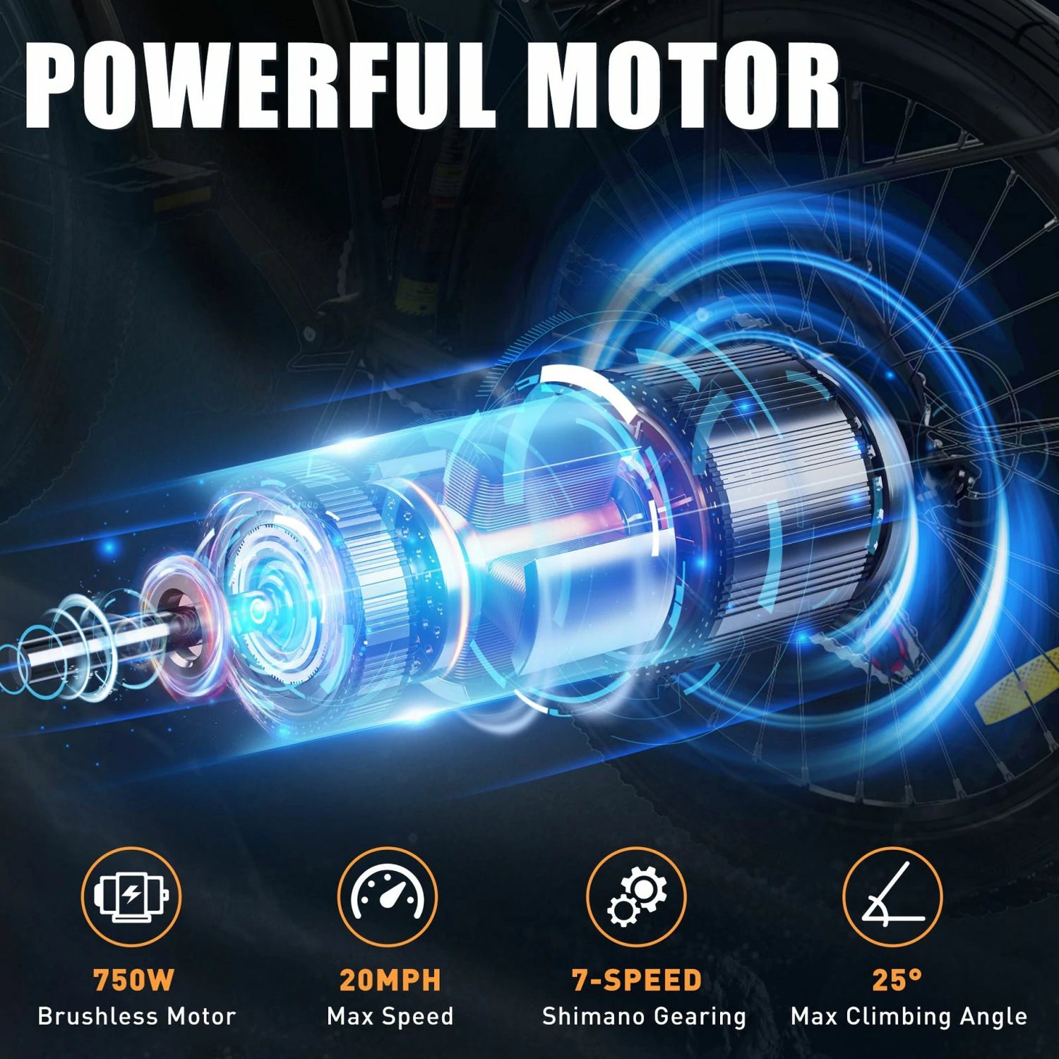 The 750w geared hub motor provides quicker acceleration and smoother exploration. Maximum speed can reach 20MPH. Maximum climbing angle can reach 25 degree.