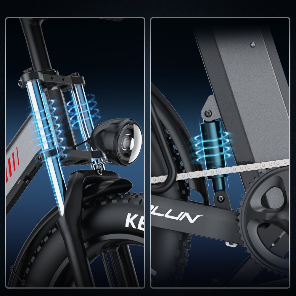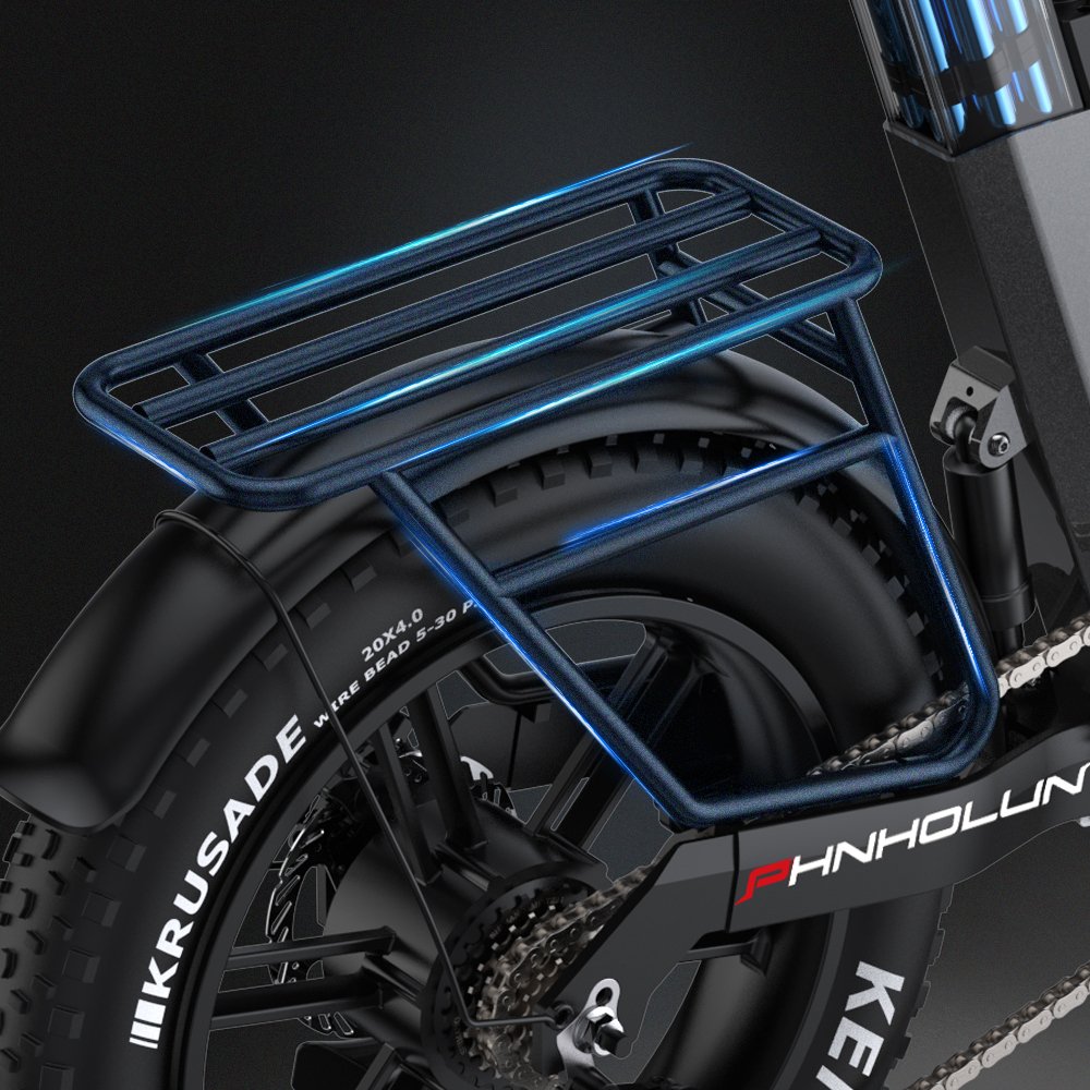 The C6 PRO model embodies the ultimate in e-bike performance. It comes with a powerful 1000W motor, a removable 48V 17.5Ah battery with a range of 80-120km, and a 7-speed Shimano transmission for all terrains. Its 20℅4.0-inch all-terrain tires provide excellent grip, while front and rear suspension ensure a smooth ride. A bright headlight and brake taillight increase safety, as does an app that allows you to control the bike. Finally, the sturdy rear rack adds practical dimension.