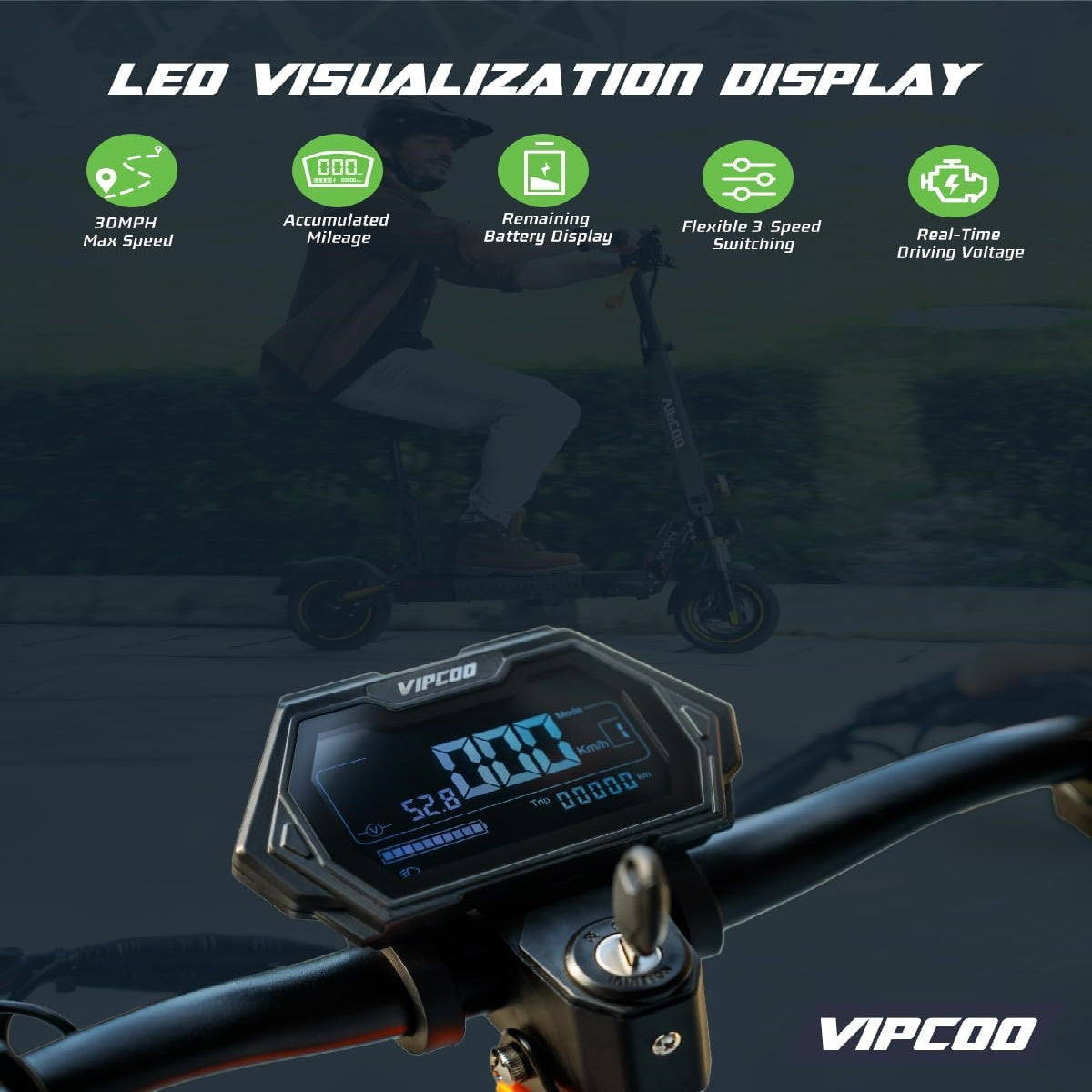 VS1 e scooter for adults display instrument has a wealth of body parameters (driving speed, driving voltage, power range, cumulative driving range, driving gear, driving light type) overall can be more comprehensive access to the body's parameter information. So that cycling users can ride with greater confidence.